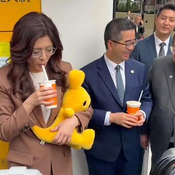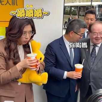 而在喝奶茶的时候,郑丽文较着感到很诧异,倒不是因为智能化的点餐样式,而是奶茶出餐以后,竟然还是热的,郑丽文连连惊奇,还说思把好意思团带回台湾去。