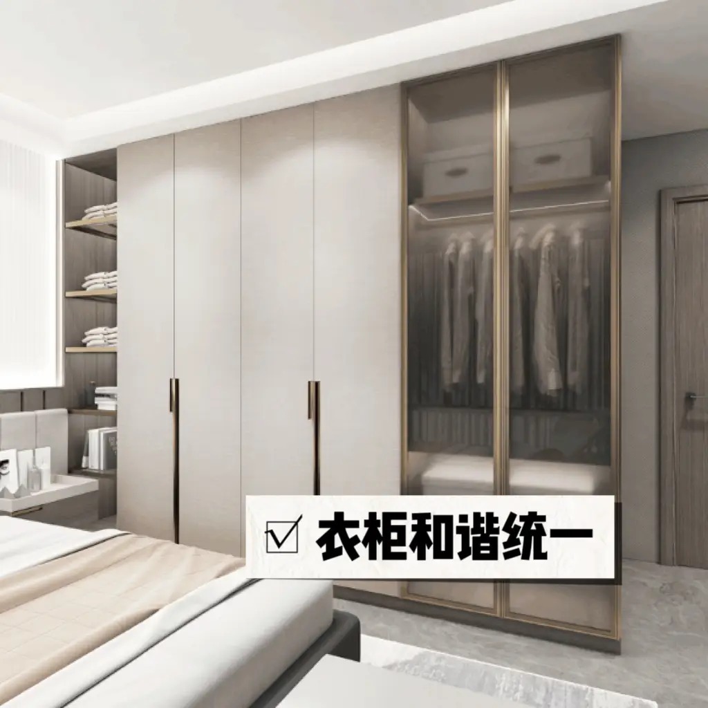 卧室念念要“省”出空间,提议作念全屋定制家居。衣柜多作念挂衣区,少作念叠衣区,不要作念转角弧形隔板,在使用中不仅不通俗而且很容易审好意思疲倦。而况我提议衣柜一定作念好封板的选拔和狡计,包括顶部封板、侧边和底部封板,这些封板作用很大,不仅不错遮挡破绽,还能相沿衣柜让衣柜愈加褂讪,在外不雅上也能使衣柜与举座家装更为调解。