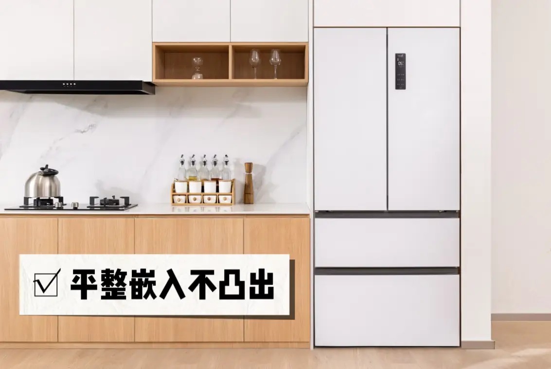 TCL尺度薄嵌T9拥580mm超薄机身,不错平整的镶嵌600mm橱柜不突兀。加上正经镶嵌式搭钮+底部散热狡计,TCL尺度薄嵌T9最大实现省俭了两侧空间,还幸免了难搞的卫死活角,即使在贴墙的情况下,仍不错90º开门毫无压力,好意思不雅又实用。